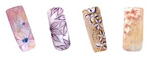 В качестве основы для такого покрытия можно взять бесцветный лак, нежно-розовый или цвета "слоновой кости". На непокрытой аппликацией части ногтя будет уместно выложить небольшой узор из мелких серебряных или золотых бульенок, а если ноготь достаточно крупный, то можно использовать и стразы.
