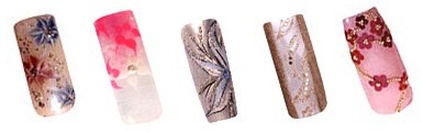 "Перенести" украшения на ноготь можно либо, имитируя материал (как мы описали с жемчугом – перламутр/жемчуг/, золотой песок /золото/, хрустальные стразы /бриллианты/), либо, используя форму украшения (например, "опоясов" ноготь рисунком так, чтобы угадывалась форма подвески на шее или кулона).